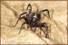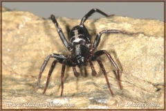 Poten donkerbruin met bijna zwarte femora en hier en daar witte vlekjes.