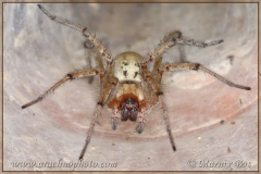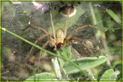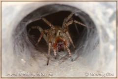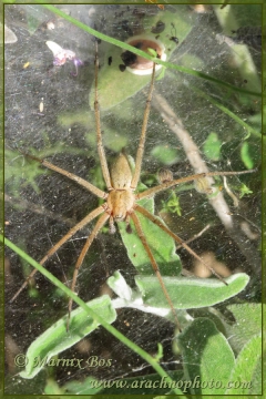 Dry, warm, sometimes stony areas in plants and shrubs. The spider builds herein a big funnelweb with a tubular retreat.