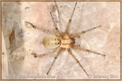 Abdomen yellow-beige with light yellow chevrons with dark tips and dark spots on the front.