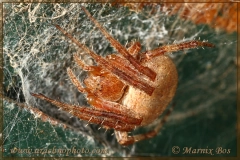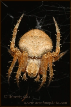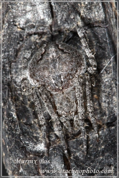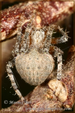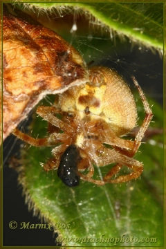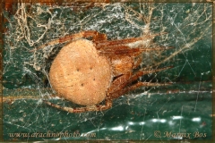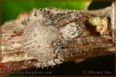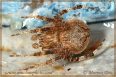 Abdomen yellow-brown, brown or grey with a dark leaf-like pattern. This pattern is not always clearly visible.