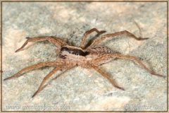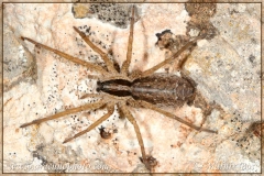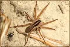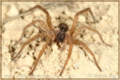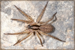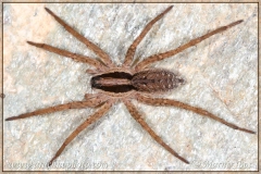 Resembles Hogna radiata, but always lacks the radial stripes on the carapace.