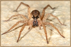Carapace light brown with two black-brown longitudinal bands which run as far as over the eyes. Black-brown chelicerae.