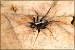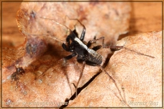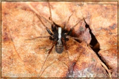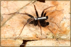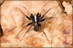 Abdomen black-brown with white and light brown spots and a larger white spot on the front.