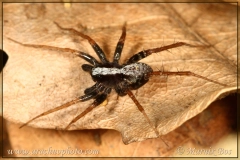 Abdomen dark brown with light brown spots and a larger light brown spot on the front.