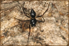 Abdomen remarkably pointed shaped. Colour dark reddish brown to black.