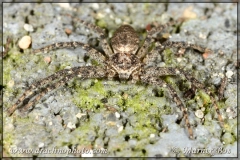 Poten en palpen gelig bruin met donkere vlekken. Femora lichter dan de overige delen.