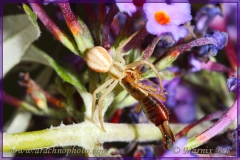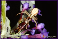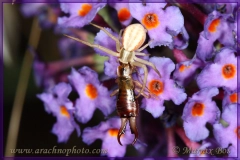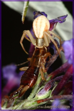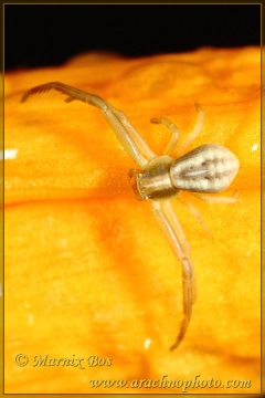 Abdomen bleek geel of wit met bovenop en langs de zijkanten donkere lengtebanden.