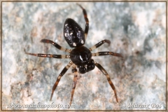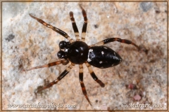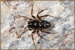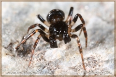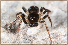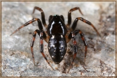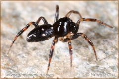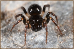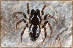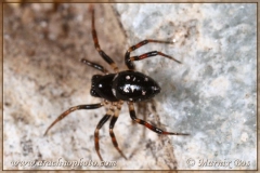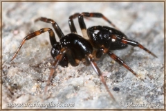 Poten geel-oranje met donkerbruine tot zwarte ringen. Femora geheel donkerbruin tot zwart.
