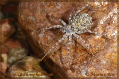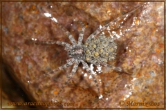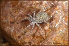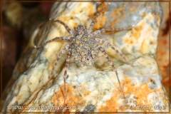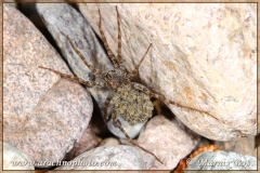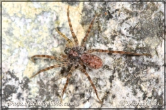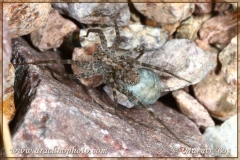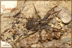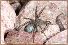 Markings and colours almost identical to the female. The tibiae and tarsi of the palps are covered in thick black hairs.