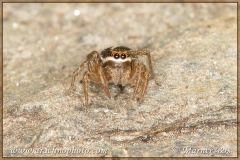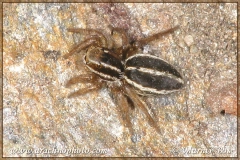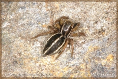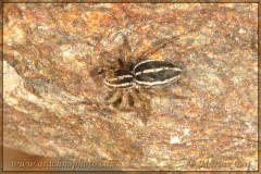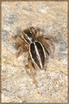Markings as female, but basic colour black and white band underneath the eyes very broad. Legs entirely black and palps with white hairs on top and black at the ends.