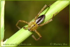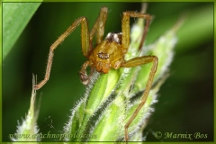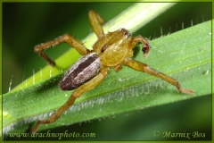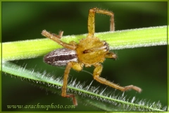 Legs and palps bright green with brown green metatarsi and tarsi.