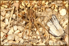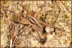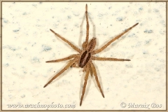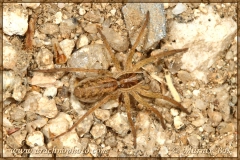Poten en palpen geelbruin tot grijsbruin met donkere vlekjes op de femora.