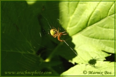Lijkt sterk op de Gewone komkommerspin (Araniella cucurbitina).