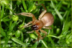 Carapax glanzend licht geelbruin. Aan de voorkant wat donkerder. Cheliceren donkerbruin tot zwart.