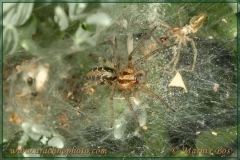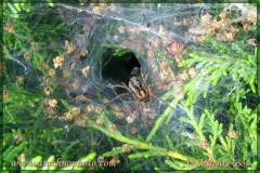 Bushes and other dense vegetation. The spider builds therein a big funnel-web with a tubular retreat.