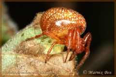 Markings and colours almost identical to the female. The legs are weak annulated and palps have reddish brown tarsi.