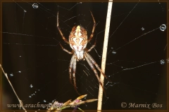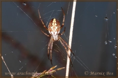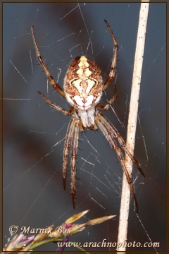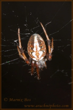 Abdomen orange-brown with a white to yellow oak leaf-shaped figure with an orange-brown longitudinal stripe in the centre.