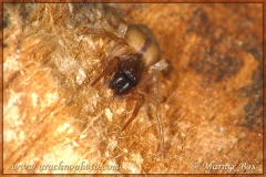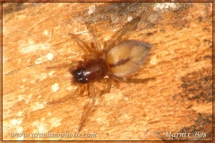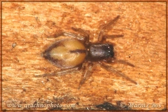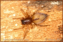 Abdomen yellow-brown with a narrow, dark brown cardiac mark and a dark brown area at the rear containing a round, light yellow-brown spot.