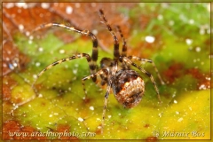 Abdomen with two lumps. In front of these lumps often dark brown, behind the lumps light brown. Entire abdomen with dark spots.