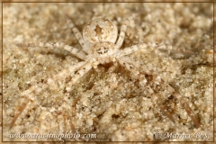 Legs and palps light sandy coloured with yellow-brown and dark brown spots. Tarsi and metatarsi of the legs yellow-brown.