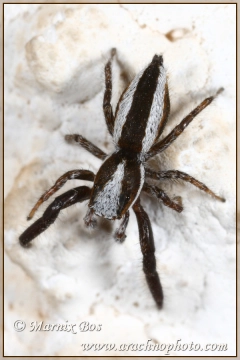Palps dark brown to black with long white hairs.