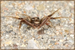 Strongly resembles Xysticus audax and Xysticus lanio. The triangular spot on the carapace which is longer and more pointed than in Xysticus audax.
