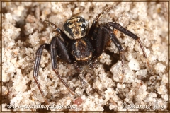 Carapace black brown with a broad yellow brown median band which reaches as far as the anterior eyes and contains a darker triangular spot that reaches to almost the rear of the carapace and a thin yellow band along the edge.