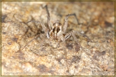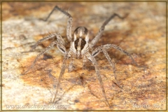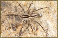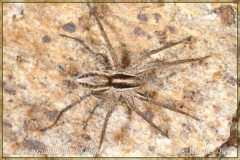 Poten licht grijsbruin. Femora aan de zijkanten met een donkere lengtestreep.