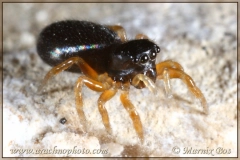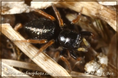 Abdomen zwart glanzend. Oppervlak soms ruw.