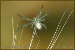 Lijkt op vrouwtje. De tekening op het abdomen is wat minder duidelijk. De palpen zijn aan het uiteinde opvallend roodbruin.